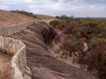 We started the day with the obligatory walk around and over Wave Rock, which was after all the point of coming to this place. I can see why some people described it to us as "under whelming" as it is not very high nor very long. But is interesting to discover how such a rock formation comes about. Its a result of differential erosion - different levels of soil moisture erodes the buried granite at different rates and soil moisture is at its highest somehwat below the surface (as surface moisture is evaporated by the sun). You will be pleased to know that there ends the days science lesson.