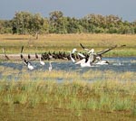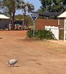 Today started with a few more photos of the bird life on the remainder of the lake at the Frewina rest Area. Once underway we were soon at Barkley Roadhouse which seems once to have been part of the homestead for Barkley Station (it may still be). We were really impressed by this roadhouse. It is the best maintained and most up-market roadhouse we have seen in all of our Australia Travels. In addition the kissing lizards out the front of the roadhouse entrance were very impressive and the Guinea Fowl running around the place were entertaining.