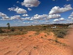 North of Wilcannia along a sealed road is the opal town of White Cliffs, smaller than other opal towns like Lightening Ridge, the town sits on top of two neighbouring hillocks. It is hard to tell today because of buildings and mining equipment that these two hills are the "white cliffs" after which the town is named.