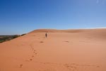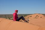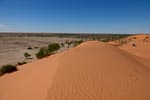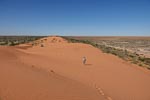 This morning we made the obligatory 35km run out to the start of the Simpson Desert Crossing and the sand dune known as Big Red. As I understand it this is the tallest dune on the entire Simpson Crossing. We drove up onto the dune at the Big Red sight and the Little Red sight. In neither case was this difficult; simply select 4wd high range in 2nd gear and go. The view from the top of Big Red was impressive and certainly the rest of the Simpson Track disappearing into the West was alluring.
