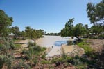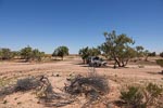 The recent rains and floods have turned the country through which the track passes into a green wonderland interspersed with red rock of the Sturt Rocky Desert. The land is almost unendingly flat except for sand dunes that run approximately north-south and hence parallel the track. We read at one information board that some of the dunes are 250km long. It is mind blowing to think of the drovers who moved herds of cattle along this track in the late 1800s and early 1900s. The monotony, heat and flies must have been horrible and they must have been tougher than us tourists as we travel in our air conditioned vehicles and still complain about the heat and flies.