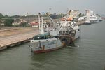 We docked in Cochin this morning just after dawn so got a good view of the port area during the docking operation. It was clear that the passenger terminal was an after thought in what is a very large and busy cargo port. Like Colombo yesterday the air was thick with dust or pollution and visibility was restricted.