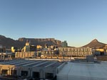 The stop in Cape Town is the end point of the East Africa cruise and the start of West Africa Cruise and as a result most passengers are disembarking and a whole new bunch are boarding. A similar thing happened in Mumbai which is where the East Afrca cruise started. On such change-over days there are usually no excursions organized by the cruise ship, but by popular demand one was organized for today. It was a quick tour of the city center, followed by a ride in the cable car to the top of Table Mountain followed by a drive along the beaches of Cape Town. As you can see in the photos below the weather gods smiled on us for this activity, with a beautiful orange sunrise followed by a warm day with bright blue sky. The cable car ride up and down Table Mountain was less delightful as there was a huge crowd at the mountain and the ride up had us queuing for 2 hours. But still the views from the top were worth the hassle.