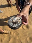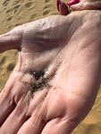 On the final leg back to Walvis Bay our guide used a magnet wrapped in plastic to demonstrate that the black particles in the sand were iron.