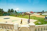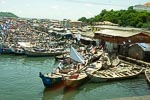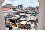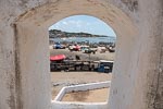 Our excursion today was a long bus ride east (from the port in Sekondi-Takorada) along the coast to the towns/cities of Cape Coast and Elmina where we visited in turn Cape Coast Castle and Elmina Castle. These two structures were built by European colonial powers as part of their search for riches on the African coast and eventually became essential facilities supporting the Atalntic slave trade. At both of these places we were able to see were slaves were kept before being shipped to the New World and at Cape Coast Castle we saw one of the original Gate of No Return.