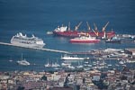 I spent the day still recovering from yesterdays food poisoning episode so did not participate in todays tour. The ship docked at Port Grande in the city of Mindelo on the island of San Vincente one of 10 volcanic islands that make up the country of Cape Verde, located in the central Atlantic Ocean. From Nina's description the town still had an African feel, with lots of dark skinned people wearing wonderful brightly coloured clothes. There was a general more prosperous feel probably coming from the lack of rubbish and better maintained buildings and roadways. A wonderful example of the effort that the island community has put into building things is the top 5 km section of the road to Mount Verde at over 2500ft. This road is made of hand laid flat stones, providing a relative flat driving surface and is in good conditions. However as a passenger trying to take photos from the bus is was extremely bumpy. We could not find out why this construction technique was used as a hot-mix road would have been a lot less work. See the photo labelled "Rocky Road".