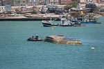 One of the interesting aspects of the towns harbor was the capsized ship a few hundred yards towards the shore from where the cruise ship docked. During the day I saw a barge moored beside the wreck. I later read that a salvage effort is underway and that this was a fishing boat abandoned in the harbor in 2015. There are apparently a number of ships that have been abandoned in Mindalo Harbor.
