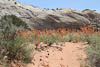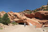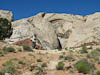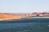 For a change of pace we continued south to Bullfrog Marina. Quite a surprise this place was. In the midst of barren red desert on the shore of Lake Powell we came across a scattered settlement sporting a large hotel and a large marina, hundreds of parked cars, and many many boat trailers. The marina seemed to be inhabited entirely by people wheeling their belongings back and forth between their rental house boat and their cars. We hoped for their sake that the boating was fun because the packing and hauling certainly did not seem so!