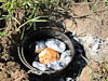 As some of you might know this is some what time consuming process. Start a fire, get some hot coals, put them in a hole, put the oven on top of those, then some more coals on top of the oven. Watch it all so that the temperature stays right.