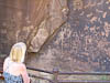 Once the morning chores were done the reduced company found its way out of camp, hooked up with Beef Basin Road and traveled on easy dirt road through a spectacular valley back to the blacktop and SR211. A few miles east on 211 brought us all to an attraction called Newspaper Rock, a large flat rock surface with a large collection of pectroglyphs.