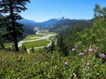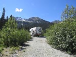 The Hurley Road eventually transitions into the Lillooet Fire road before dropping into a valley called Pemberton Meadows. We found a nice cleared area well off the road for our evenings camp. Unfortunately it was not shaded so the hours before sunset were a bit hot, todays maximum got into the 90s°F. It was also a bit dusty as at this point the road was still rock and gravel.