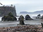 As a result of the appointment with the insurance adjuster our trip south was somewhat postponed and so we decided we would spend the weekend doing a circumnavigation of the Olympic Peninsula. The weather was terrible with lots of rain and snow as you can see from the photos below. The up side of the weather was that we almost had the Peninsula to ourselves and the snow. The snow in the forest was very pretty.