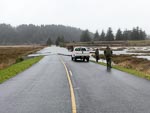With the aftermath of the accident under control we started south down the Oregon coast. We spent a couple of days traveling south in heavy rain, high winds with some occasional flooded or closed roads.