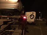 Our plans for a month on the road got off to a bad start. Our first night out we decided to stay in a rest area area on I5 just north of Tacoma, WA. This is a large rest area with dump and a parking area exclusively for RVs, a great place for a nights rest. It did not turn out that way, about 10:30pm we were awaked with a loud crash and our camper rocking violently. We jumped out in a PJs to find that a semi pulling a car-hauler trailer had hit the left rear of our camper.