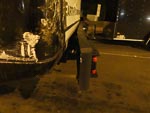 The damage to our vehicle was difficult to assess. There as a 10"x4" hole punched through the camper body high up on the left rear of the camper and the rear bumper had been bent. What was clear however was that the hole needed to get a temporary patch as soon as possible to ensure the interior of the camper was not flooded in the almost perpetual rain of Washington at this time of year.