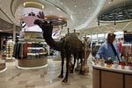 The day started with a walk through some of the Dubai Mall. We had to enter the mall because the entry to the Burj Khalifa is inside the mall. From the mall courtyard one gets a good view of Burj Khalifa across the water feature where last night we watched the fountain display. Inside the mall there is a spectacular multistorey water fall with stainless steel statues of men diving, suspended infront of the water. The mall apparenty has 1200 shops and two separate food courts.