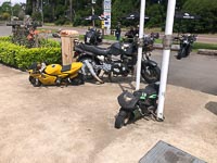 The 4th picture is taken at a cafe that is a haunt for motorcycle riders. The 3 bikes in the foreground (2 mini's and 1 normal) are just decorating the driveway; they are not customer bikes.