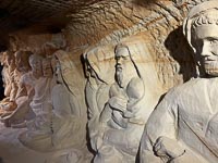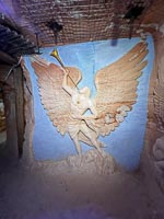 Between the mine tours we had a mind bending tour of Chambers of the Black Hand, an experience you could not guess from the name. It is a myriad of tunnels decorated with carvings of all kinds of subjects. The carvings were done by an unsuccessful Pommie opal miner who decided to try his hand at something other than mining. The crazy part (or at least one of them) of this story is that all the carvings were done with a butter knife and a dinner fork.