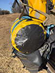 Then it was time to get started on the days journey, which was to follow the Carpentaria Highway to the junction with the Tablelands Highway. At the junction there is a roadhouse and the junction is variously known as Cape Crawford, McArthur, or Heartbreak Hotel on different maps. I dont understand about the various names. Early in the days travel I came across this pond which was hosting a lot of bird life and I used it as a rest area. While there I noticed that the bike had been hit by various colouring agents during the ride.