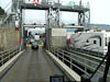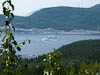 There was a fog in the valley of the St Lawrence this morning which sometimes spilled over onto the road way as we continued towards the ferry over the Fjord du Saguenay and the town of Tadoussac on the north shore of the fjord. For us Tadoussac was simply a stop for internet and fuel though for others it is a center for whale watching. We ran a foul of local parking ordinances but after some discussion the police lady who was threatening to give us a ticket instead lead us (on her motor scooter) to the top of town and a gravel parking lot next to a skate park (coordinates for other hapless RV drivers who get stuck in this town are N48.14757 W69.71359)