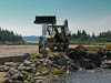 We spent the day ambling along 138 stopping from time to time at roadside picnic areas or scenic pullouts to admire the views of beaches and the St Lawrence. At one stop, which sported a tall white obelisk and a couple of dinosaur statues and a gravel parking lot we witnessed an amusing scene as three workpeople (one was a young lady) set about the task of erecting some new signs. The sign advised dog owners to "pickup after their dog" but Nina interpreted the sign as "bury your dogs business after he/she is finished". The amusing thing about this is that after failing to drive the sign into the ground using the big front shovel on their tractor it took 30 minutes to scrape out a 2 ft deep hole with the digger on the rear of the tractor. All through this episode Nina was in fits of laughter pointing out that even with an excavating machine digging a hole was a challenge how was some poor dog owner going to do it by hand.