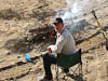 Towards the end of the day we found a large secluded sand pit for a nights camping spot. This gave Nina an opportunity to finish the washing. She had been experimenting with a technique we heard about years ago in Australia, one that requires a rough road. Place your dirty cloths plus soap and water in a bucket, drive on a rough road for some hours, replace the soapy water with fresh and repeat the drive. The agitation from the road is supposed to act like a washing machine. So when we stopped for the night all that remained was to wring the water out and hang them out to dry. Meanwhile I busied myself with a camp fire and and eventually cooked dinner.