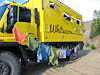 At our lunch stop I just happened to look through the skylight (one does these things) and noticed two loose nuts and a bolt just lying on the roof. How they could still be there after the rough roads? So out with the ladder, onto the roof and put them back in place.
