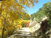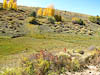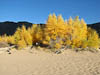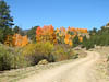 Although we did not know it at the start, today would be consumed by autumn colors, The Sangre de Cristo Mountains and the Great Sand Dune National Preserve. From our camp in the San Isabel NF (in the Wet Mountains) we passed through the town of Westcliffe (which seemed pretty much closed down for the season) and down highway 69 which travels north-south just east of the Sangre de Cristo Mountains. There are many minor roads heading west from 69 into the S de C and eventually we succumbed and started west towards Mosca Pass along CR-580. This country road changed names a number of times as it wound its way west and gradually deteriorated from a two lane black top into a narrow wheel track as it climbed to Mosca Pass at just short of 10,000 ft. Along the way we passed through farmland, open range and wonderful high alpine forest where the Aspens were displaying a wonderful mix of fall colors and providing a breath taking contrast to the dark spruce. We have been captivated by the yellow and orange colors of the Aspens for a number of days now and have been at great pains to capture these vivid colors with our camera, but they continue to prove elusive.