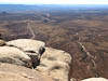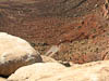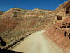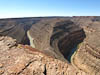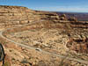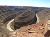 Our route from Blanding was south on 261 towards Monument Valley. Along the way we came across two spectacular but unexpected sights. The first was the (to us) oddly names Moki Dugway. This is a roadway carved into a sandstone escarpment that connects the highland plateau of the canyon land region with the lower lands of the northern Arizona Navajo Indian lands of Monument Valley. The next interesting sight was the descriptively named Gooseneck State Park. At this spot there is an overlook which gives incredible views of the twisting course of the San Jaun river before it finds its way into Lake Powell.