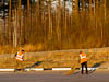 Around 9:00pm the cleanup crew came around to clean the parking lot; and to our way of thinking demonstrated a rather bizarre strategy for disposing of rubbish left on the areas paved surface. Two techniques were exhibited. The first simply involved picking up any rubbish on the paved surface and throwing it onto the surrounding non-paved area; as you might imagine the surrounding non paved area looked rather like a refuse pit. The second technique was applied to any piece of trash found within a short distance on one of the areas garden beds; the offending piece of trash was simply buried (individually) in that nearby garden bed. Mind you this will not seriously harm the garden beds as there are no plants in them.