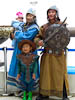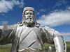 A sightseeing day. We set off at 9:00 this morning in a Lexus SUV with Turuu driving to spend a day sightseeing outside of UB. We picked a route east from the city towards what we had been told was a giant silver statue of Genghis Khan (also spelled Chinggis Khaan) on a horse made out of stainless steel. In the flesh this statue is enormous and it sits on top of a building that houses a couple of museums, a cafe, and in the foyer a 9 meter high traditional Mongolian boot and a 4 meter long Mongolian horse whip. The place was quite popular with a good number of visitors, mostly Mongolians, though with a healthy sample of tourists. In the foyer one could hire traditional Mongolian clothes (from the Chinggis period) and dress as one of the Mongol Horde. This was very popular with locals who seem to enjoy reliving their conquest of much of the world.