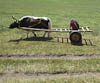Then it was time to head back to the main road. We had a couple of encounters with locals on our return journey. A man leading the most enormous animal pulling a cart with two smiling and enthusiastic children. And when we stopped for a snack in a saddle above a lake (and small ger camp) a young boy of perhaps 9 years rode up to see us. At first a little hesitant he quickly relaxed and accepted our offer of food and drink.