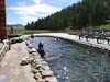 We pulled up in front of the Duut Resort and within 3 minutes a young man came out to escort us into the establishment. At first it seemed that noone spoke English but eventually we were presented to a young Philippino man doing seasonal work at the resort. He organized coffee for one, the use of the showers and their hot pool. We spent an enjoyable hour lazying in and around the pool before dragging ourselves away. We learned from our young host that during July and August Mongols are the most common guests and that they spend more money on accomodation, food and drink than foreign tourists.