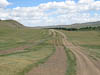 I was struck both yesterday and today during this side trip to the hot springs by our Garmin GPS telling us that we were Driving on unpaved road. Unpaved roads? - sometimes I could barely find a track at all let alone a road. But I guess it is all in ones definition of a road. For these wheel marks in the steppes certainly are frequently/commonly used roads for the people that live here. I have included a selection of photos (below) of the "unpaved road".