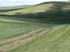 Before getting underway this morning we were passed by a number of mini-vans returning from the hot springs with their load of tourists. We waved a good morning greeting. Once underway we traveled at our now customery 10-15 mph over the steppes trying to find the flatest track as the truck (and Nina) do not seem to like steep side-hills.