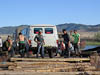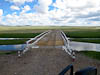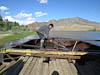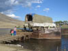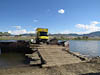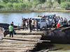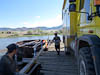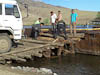 To say that we were a little uncertain of the capacity of this improvised vessel would be an understatement but we had no choice as the river was clearly too deep to ford. So when our turn came I followed directions drove up the bumpy ramp and onto the "deck" as instructed. I was sure I felt the deck flex under the weight of the vehicle but it did not break. With the crossing over the crew took some time to get the deck lined up with the loading ramp (as I said they had no power of any form so they simply man-handled this vessel into the correct position, then used the capstans to pull it tight against the ramp). I spent a bit of time inspecting the ramp to make sure nothing would rip a hole in our tires and once satisfied drove off - no dramas!!