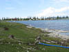It did not take long exploring around the town to determine that any Lakeside camping places were occupied by tourist Ger camps. So we decided to try the road shown on our map (and discussed in the LonelyPlanet as the easier side to travel) along the western shore of the lake. It quickly became obvious that this was a "road" in concept only as it soon turned into a muddy, rocky trail.