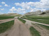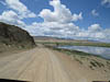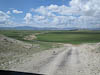 After all the chores were done we finally headed out of Moron to start our journey west. Initially the road headed south before a bridge carried us over the Delgermoron River and then for the next 60 km we followed those now familiar wheel ruts in the grass steppes (and also the followed the Delgermoron River). This section of "road" was, however, a little different. There were a few sections of graded road where the terrain narrowed beside the river or over a small saddle, and also this section of road had km posts; very civilized.