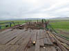 After Tsetseleg the map showed that the road crossed the Tesiin River and as we approached the crossing we could see a bridge; however it soon became apparent that the bridge was out of commission and that fording the river was required.