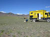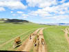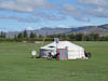Bright sun and warmer weather. Our route today took us back to the valley of the Tesiin River and for much of the day we traveled through that valley only occasionally leaving it to bypass narrow stretches of the valley. The Tesiin is a large river and seems to support a good size population of herders as we passed many Ger camps and herds of animals through out the day.