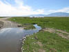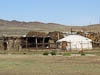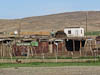 It took us a few hours this morning to wind our way across the steppes back to the "main road" and then into the town of Ulaangom. To our surprise the last 13 km into the town was good paved road and it was a pleasure (even though a short lived one) to drive on a real road for a while. Mind you on this road we came across a gang of workers painting cener lines by hand with brushes and a stencil.