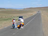 With business finished we found our way out of town and onto the "road" south that in a few days will deliver us to the city of Khovd. Almost immediately we noticed that this road is more heavily used than the one we had traveled over during the past week. More cars and a lot more trucks; the trucks in particular were interesting as the aim seems to be to pack as much cargo as possible onto these.