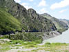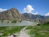 Today we had great weather, good road and just fabulous scenery. The route pretty much traversed the Altai Mountains by following a series of river valley's with one substantial climb over a pass to add variety. The rivers we followed were generally big and fast flowing, sometimes with steep gorges, and sometimes with grass banks. We frequently passed through nice little villages, that although clearly of modest means were well maintained and tidy. We have not seen any of the wide spread trash/garbage that we saw in Siberia. We saw many places catering to tourists (though we assume Russian tourists), rafing outfits on the fast rivers, hotels, and places that looked like camp grounds. We also saw a lot of cars and small SUVs with their roofs loaded with luggae - we assumed they were the tourists enjoying this fabulous mountain playground. There were miles of delightful (possible) camping spots along the banks of the rivers and we were a little sad that we needed to keep moving rather than enjoy these spots.