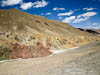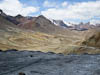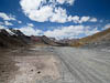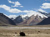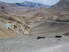 Today we crossed what we believe will be our highest point on this years journey, Ak-Baital Pass at 4655 meters (15,272 feet). But equally we spent almost the entire day traveling at over 4000 meters (13,125 ft). Only at the end of the day as we neared the town of Murghab did our GPS register an elevation below 4000 m. Todays scenery was stark and spectacular. For most of our way the road ran through one river valley or another. Typically the valleys were very wide and filled with grey gravel, and surrounded by barren mountains of many colors, and then the bigger mountains topped off with snow and glaciers. The road was a mix of old pavement and stretches of gravel, but really surprisingly good considering where we were. Though like yesterday there were periodic signs that nature was fighting back and from time to time we encountered road sections that had washed away or were being eaten away by river flow. There were also signs of recent road works so we guessed some effort is made to keep this road open.