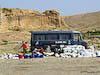 We eventually camped about 30 km short of Buston in the desert a good distance off the road and spent the last half of the afternoon cooking. Also contrary to our expectations and fears the day was only hot, not blazing, and the outside temperature did not even get above 87°F.