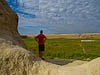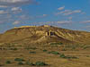 There are three separate ruins at Ayaz qala two of which sit on hill tops. Nearby there is a yurt camp for those that need accomodation. From the end of the sealed road a rough track leads up to a rough parking lot just below the walls of the ruin on the tallest hill. We parked there and went exploring. The qala is in poor condition and nature seems to be reclaiming the area despite some limited efforts by people to do repairs. The location is fabulous. Situated on the only hill for miles one is given a great view of the flat land of western Uzbekistan (or Khorezm province as we would later learn).
