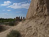The first of the qalas was called Guldursun qala - today it is simply a large rectangular area surrounded by a mud brick wall. The surface of the wall has been damaged by rain and weathering so that the bricks that compose the wall are only visible in a few spots. This qala is in the middle of a small rural town and the locals have taken over some of the enclosed area for farming.