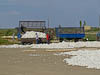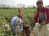 At the town of Turtkul we departed from the main westerward highway the E40 and headed north towards some old towns/forts called qala that Nina had read about in our guide book. At the entrance to Turtkul we picked up 100 liters of fuel at 3000 soms /liter and then wound our way through the main street of the town which as is common was also the market and bus station and then we were out into the countryside. To our surprise the desert gave way to well irrigated cotton and corn fields. Cotton picking season seems to be getting started as today for the first time we saw significant numbers of people out in the fields picking the white stuff and even saw piles of harvested cotton.