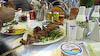We topped our tour off with a meal at one of the better (according to our guide) restaurants in town. We ordered kebabs (that's what we would call them at home). Meat on metal skewers. Throughout Central Asia and Russia these are known as Shashlik and are generally made from an alternating mix of lamb fat and old lamb meat. In Iran they are called Shishlik, not a big linguistic difference. But the culinary difference is beyond words. The shishlick we were served had 6 to 8 lamb cutlets on each skewer. The meat was young and tender and very nicely cooked. It is without a doubt the best meat meal we have had since we left the US.