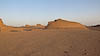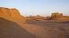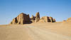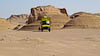Just before Shahdad we were relieved and surprised to find a sign that pointed us along a nice paved road north towards Kaluts. After 45 km or so along this road through increasingly dry and desolate country we arrived. The Kalut are a series of geological features standing above the desert. To me they look like sandstone castles, we guessed some form of sedimetary rock that has been carved by wind and water into fanciful shapes. We found our way off the highway in among the castles and decided to camp there for the night. We broke out the camp chairs, positioned them in the shade being provided by the truck and proceeded to idle away the afternoon reading and taking photos. Our trusty thermometer told us that in the shade the temperatre was 108°F; and we were going to camp here!!